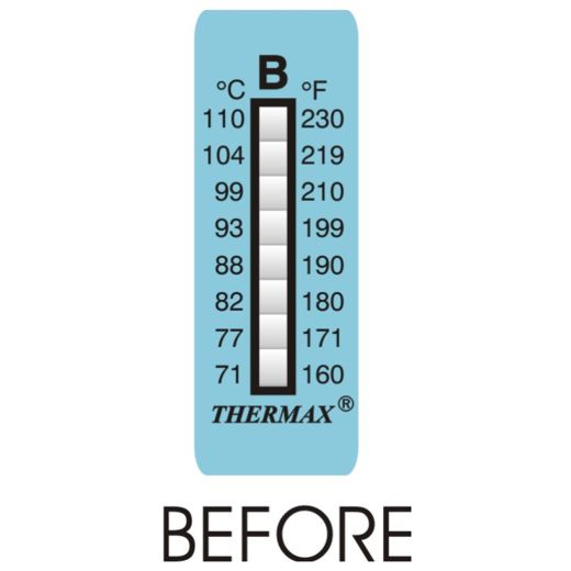 NIEODWRACALNE WSKAŹNIKI PASKI TEMPERATURY WYKORZYSTUJĄCE SWÓJ SKŁAD CHEMICZNY KTÓRY REAGUJE PRZY ZAPROGRAMOWANYCH TEMPERATURACH NIEODWRACALNĄ ZMIANĘ BARWY